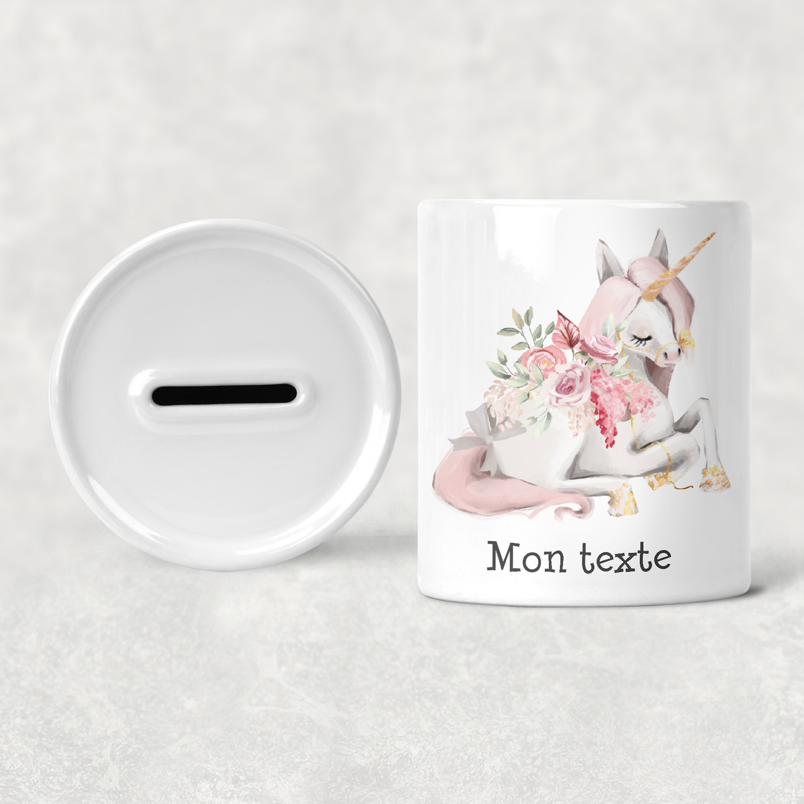Hucha para niños personalizada - Infantil - Unicornio Flores