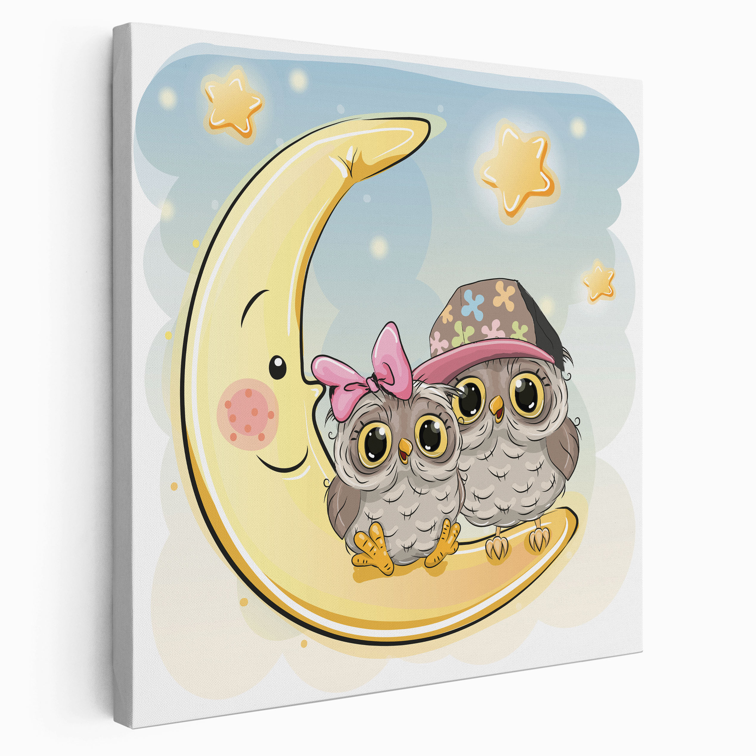Lienzo cuadrado para niños - Infantil - Búhos en la luna