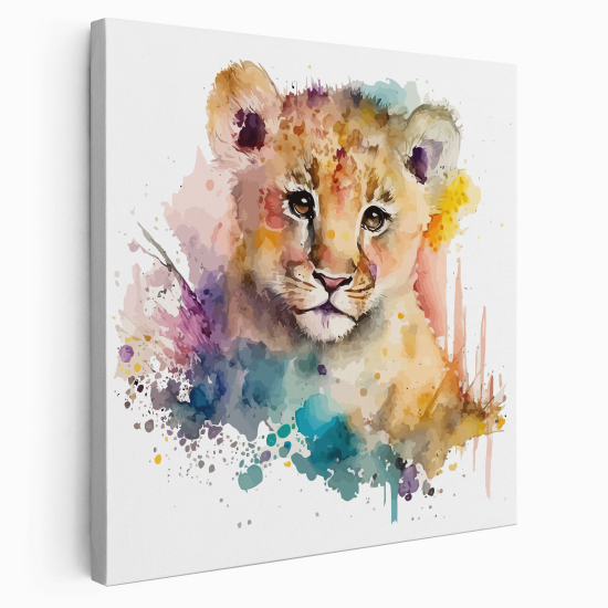 Lienzo cuadrado para niños - Infantil - Cachorro de león colorido