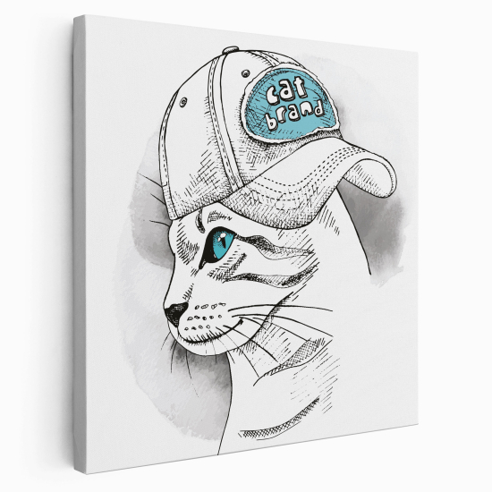 Lienzo cuadrado para niños - Infantil - Gato gorra