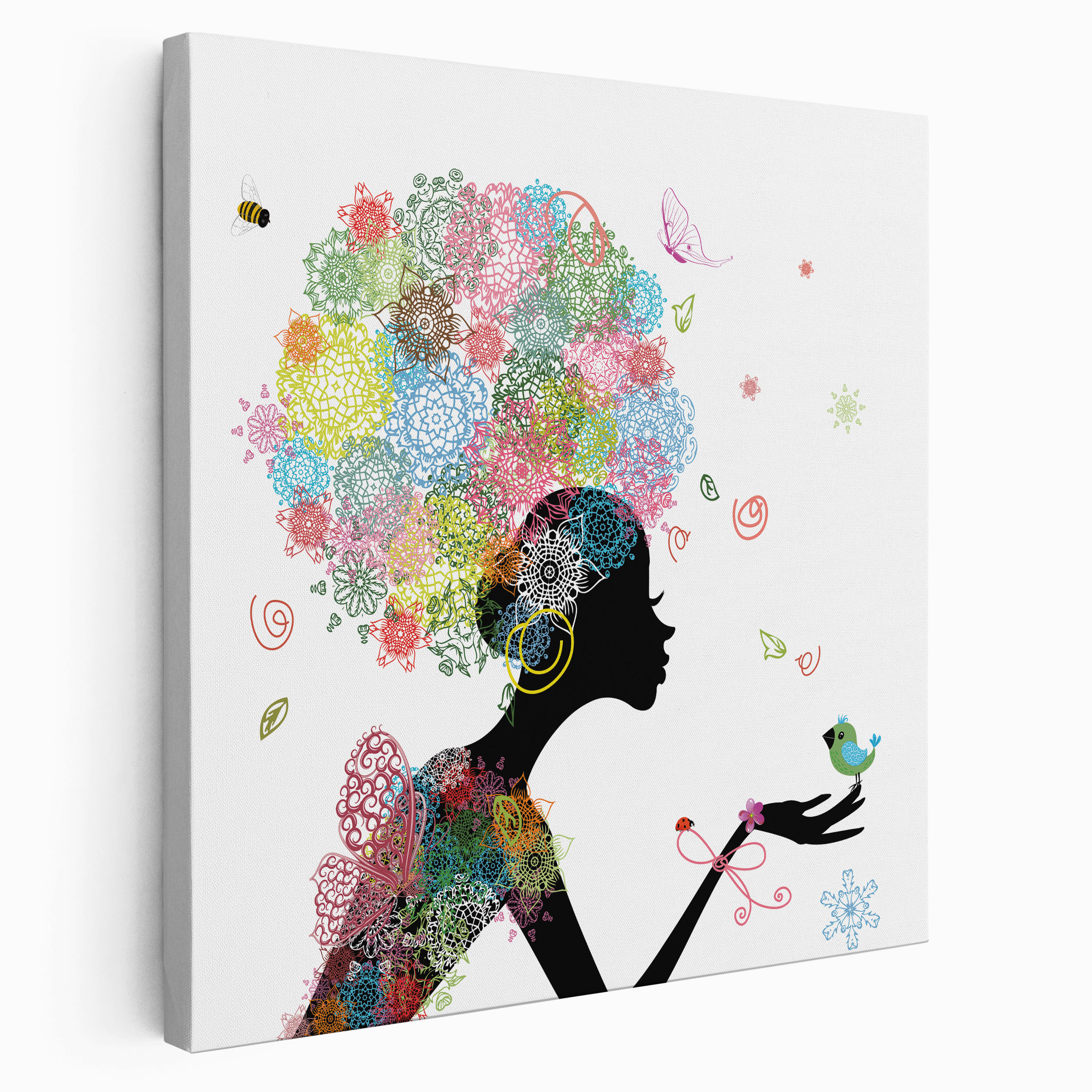 Lienzo cuadrado para niños - Infantil - Hada mariposas coloridas