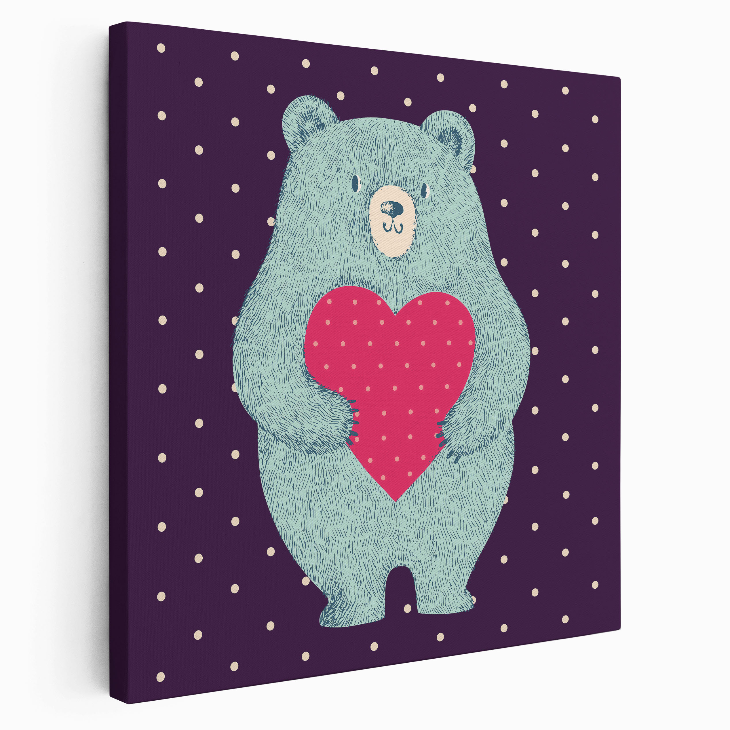 Lienzo cuadrado para niños - Infantil - Oso corazón