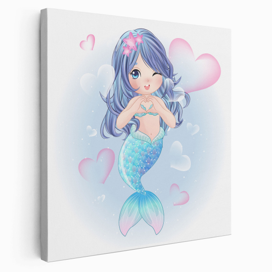 Lienzo cuadrado para niños - Infantil - Sirena Corazones