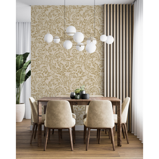 El papel pintado es satinado, sin tejer y ligeramente estructurado.