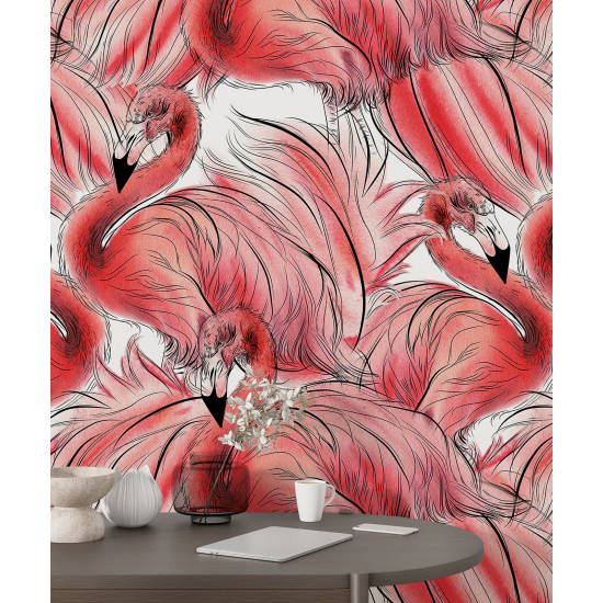 www.lumalea.es > Papeles Pintados > Papeles Pintados de Paneles Repetitivos > Motivos de Talla XL > Papel pintado con motivos XL - Flamencos Rosados