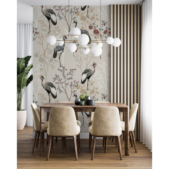 El papel pintado es satinado, sin tejer y ligeramente estructurado.