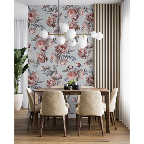 El papel pintado es satinado, sin tejer y ligeramente estructurado.