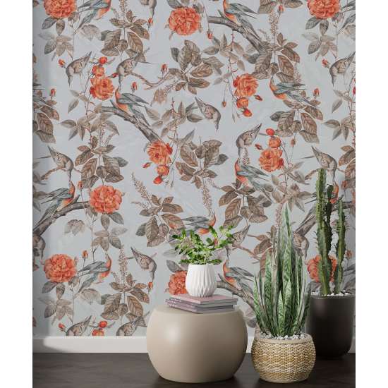 El papel pintado es satinado, sin tejer y ligeramente estructurado.