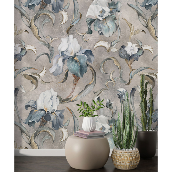 El papel pintado es satinado, sin tejer y ligeramente estructurado.