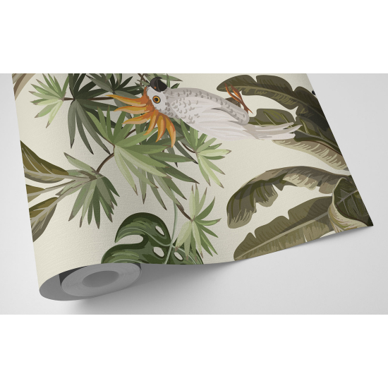 El papel pintado es satinado, sin tejer y ligeramente estructurado.