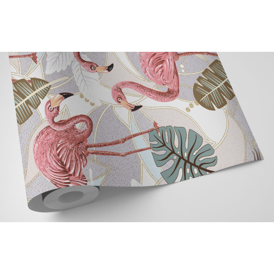 El papel pintado es satinado, sin tejer y ligeramente estructurado.