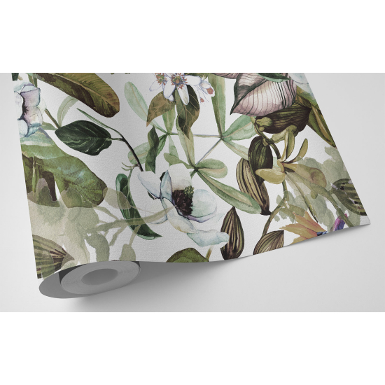 El papel pintado es satinado, sin tejer y ligeramente estructurado.