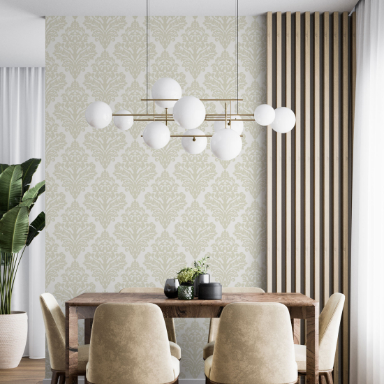 El papel pintado es satinado, sin tejer y ligeramente estructurado.