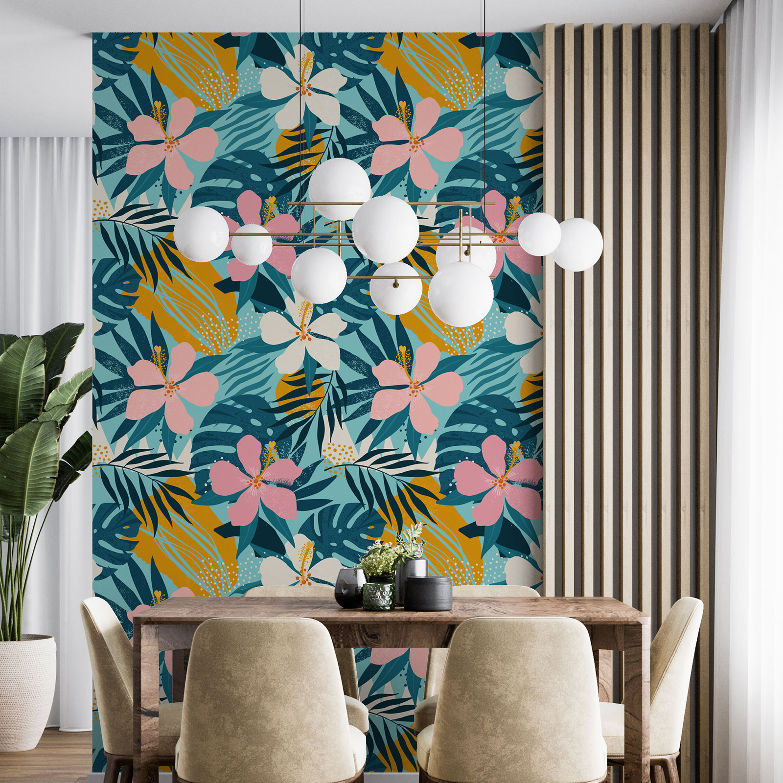 ¡Listo! Tu papel pintado está colocado, transformando tu pared en una obra de arte inmersiva.