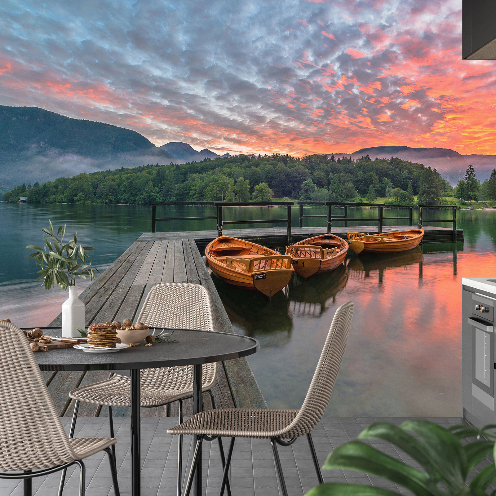 Papel pintado panorámico - Barcos Puesta de Sol