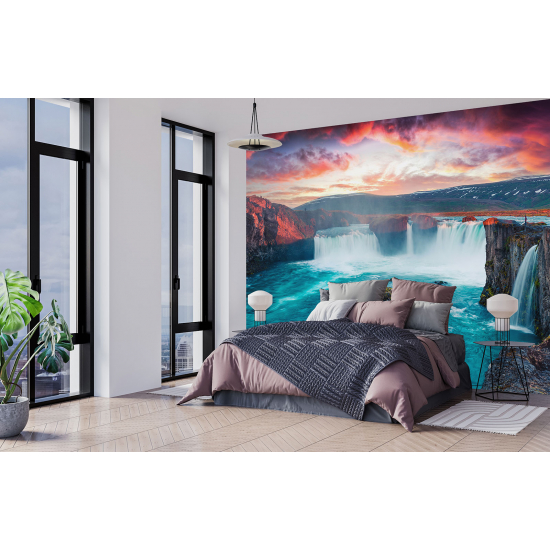 Papel pintado panorámico - Cascadas Puesta de Sol