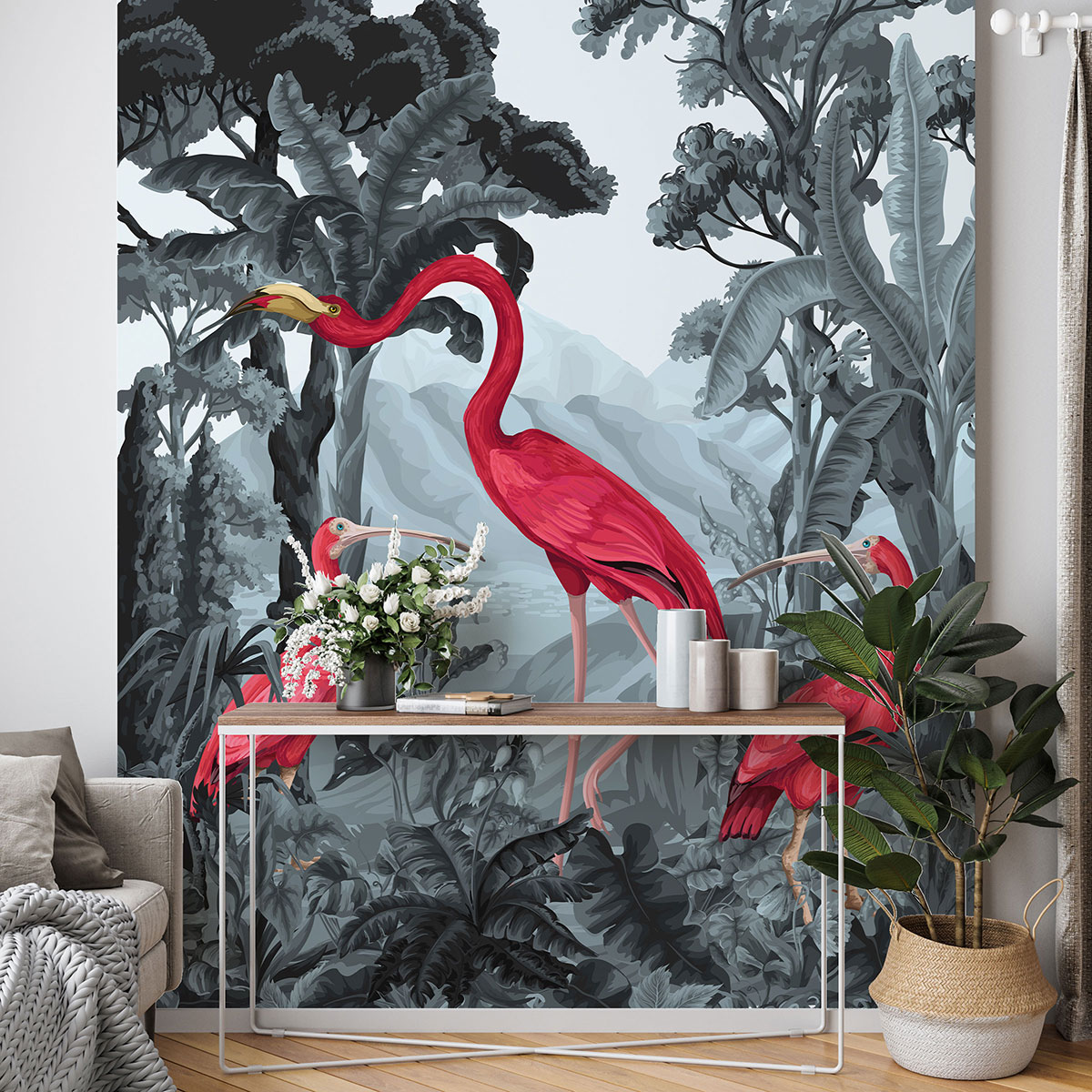 Papel pintado panorámico - Flamenco Rosado Aves