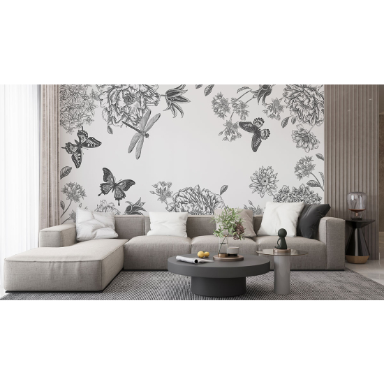 Papel pintado panorámico - Flores Mariposas