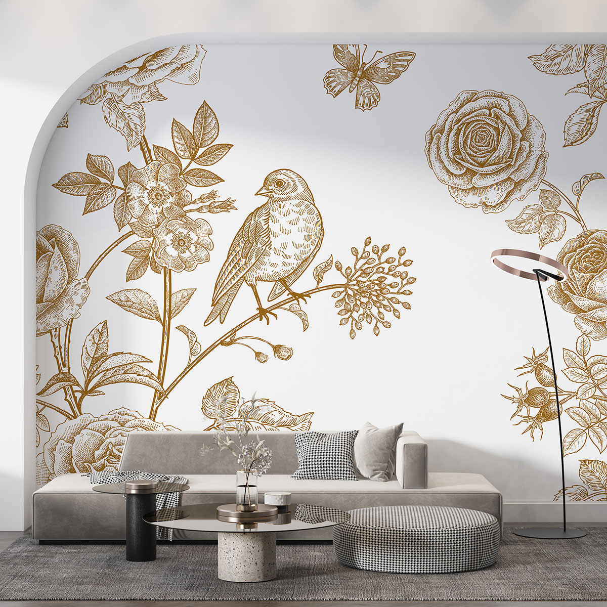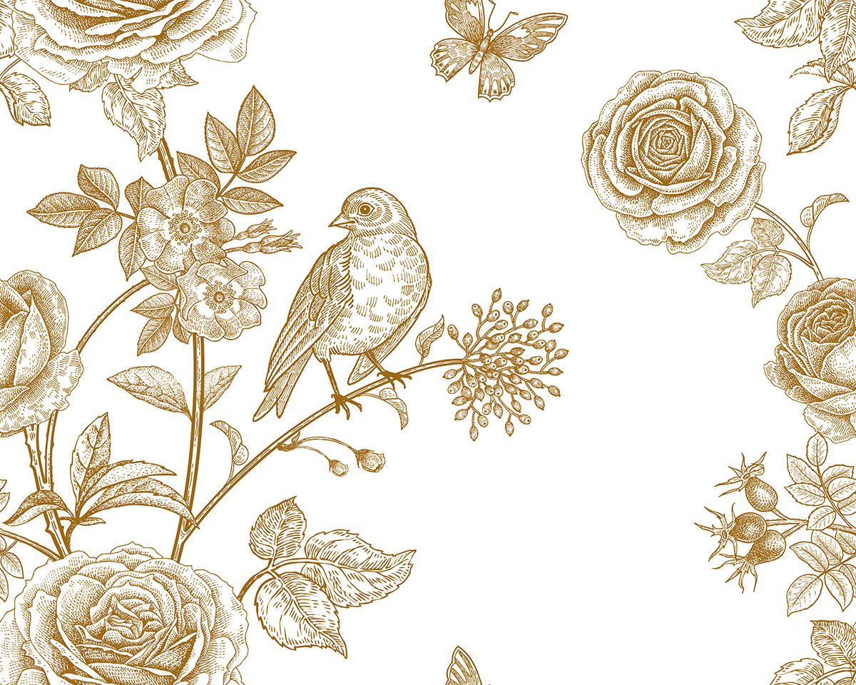 Papel pintado panorámico - Flores Pájaro