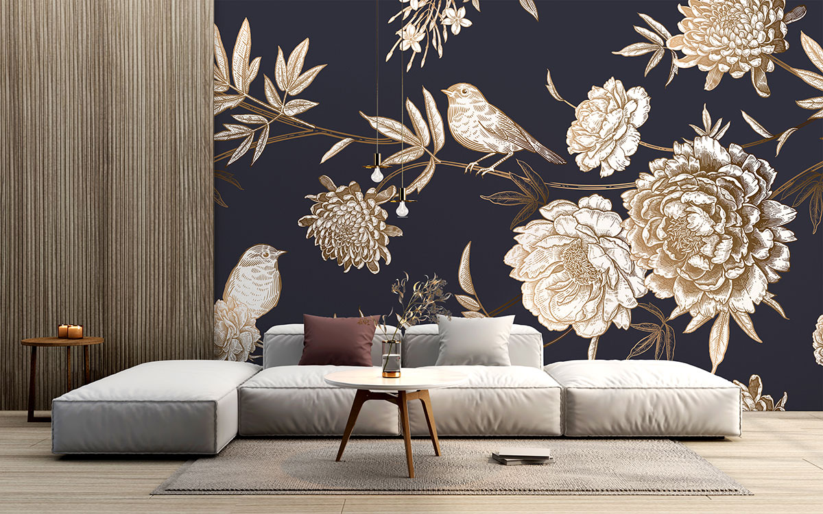 www.lumalea.es > Papeles Pintados > Papeles Pintados Panorámicos > Flores / Plantas > Papel pintado panorámico - Flores Pájaros