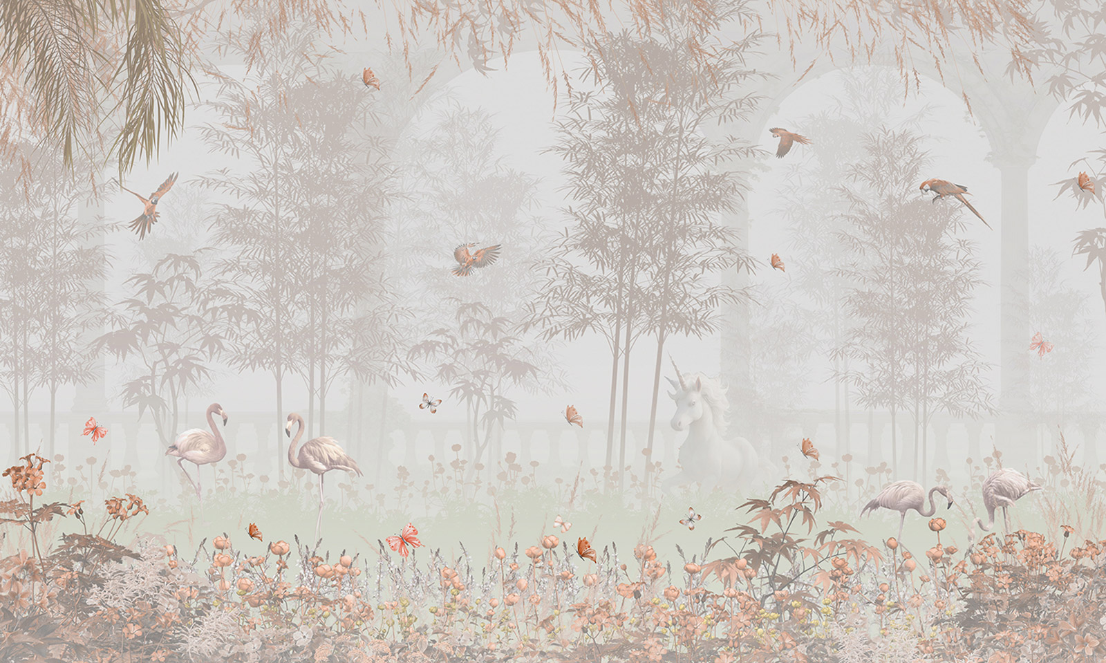 Papel pintado panorámico Infantil - Flamencos Rosas