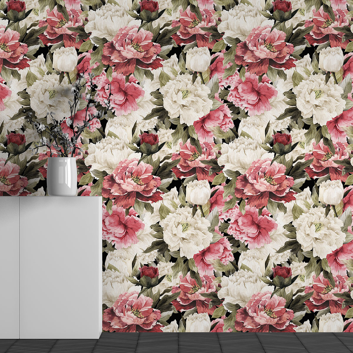 El papel pintado es satinado, sin tejer y ligeramente estructurado.