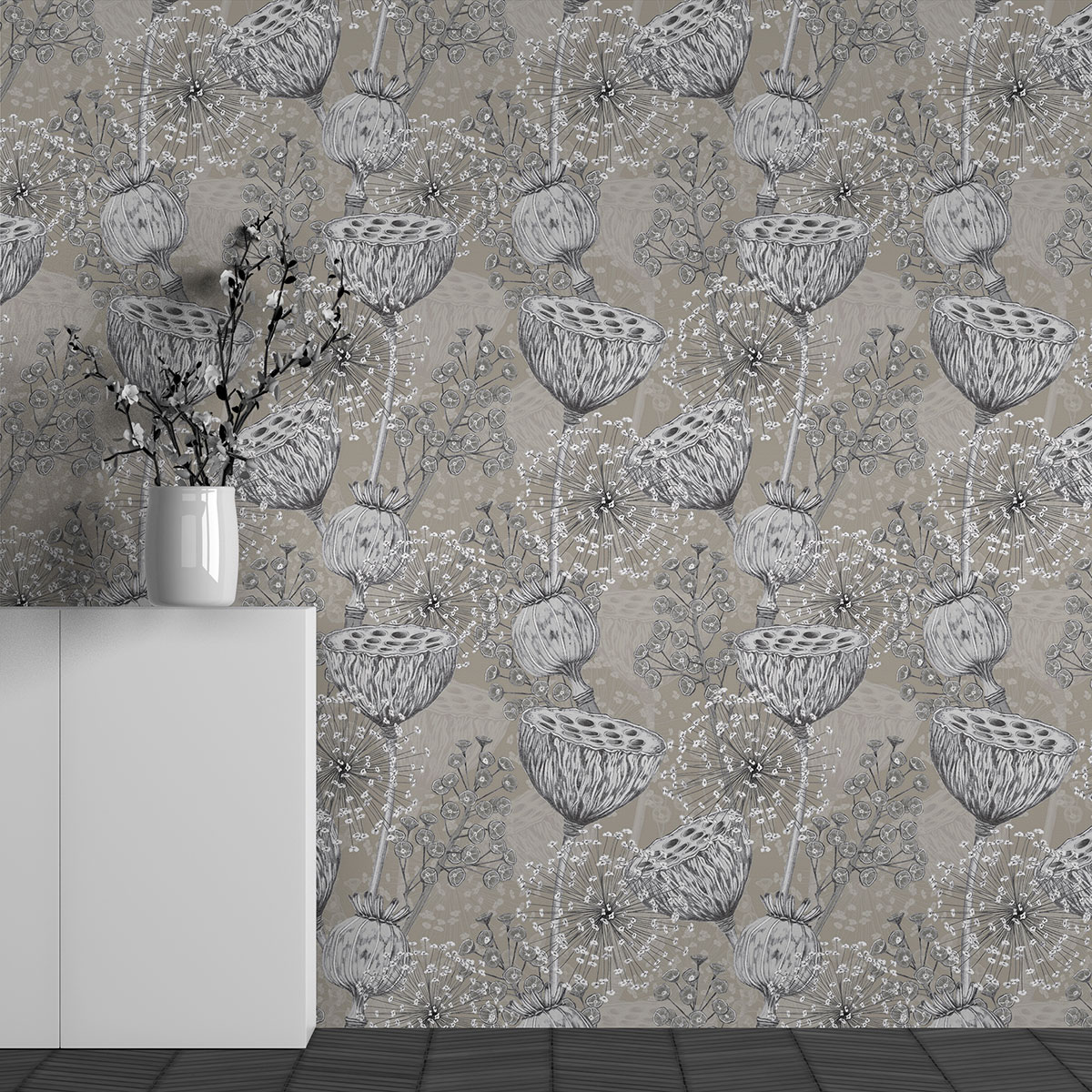 El papel pintado es satinado, sin tejer y ligeramente estructurado.