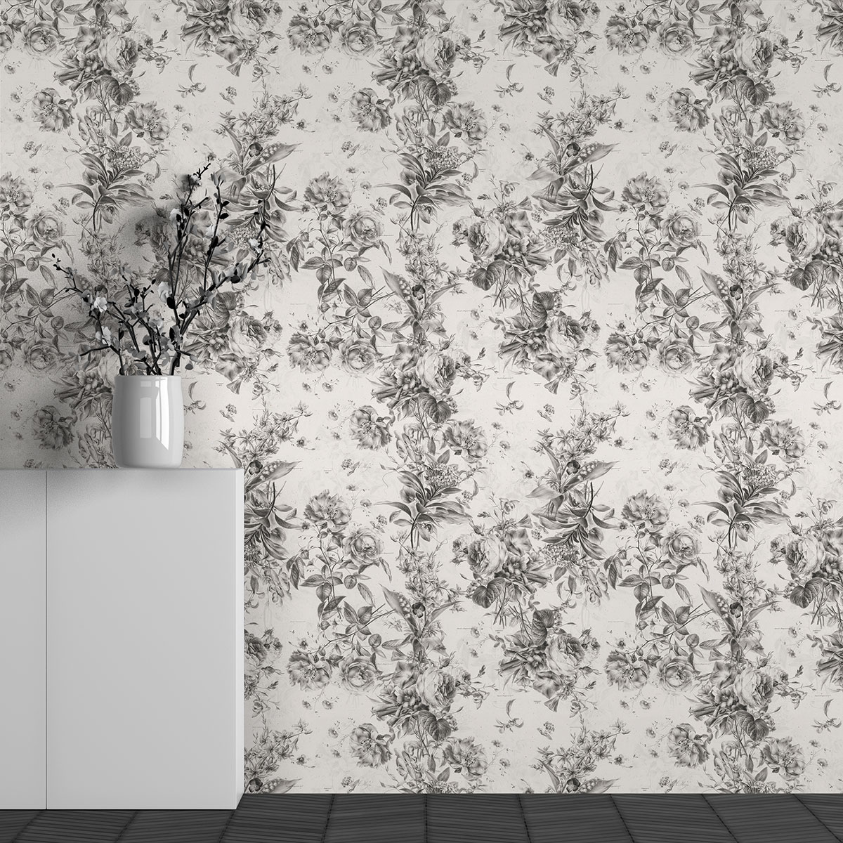 El papel pintado es satinado, sin tejer y ligeramente estructurado.