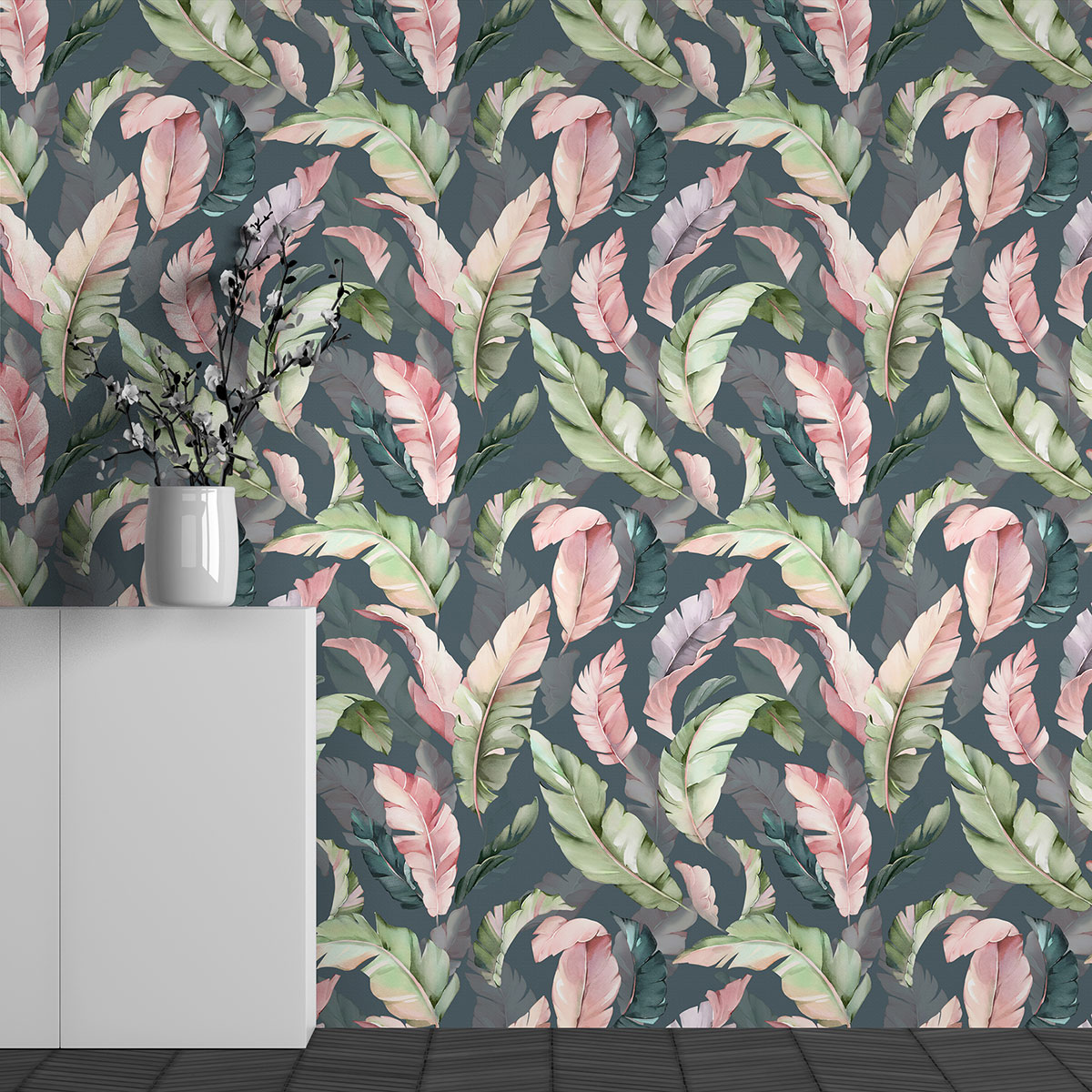 El papel pintado es satinado, sin tejer y ligeramente estructurado.