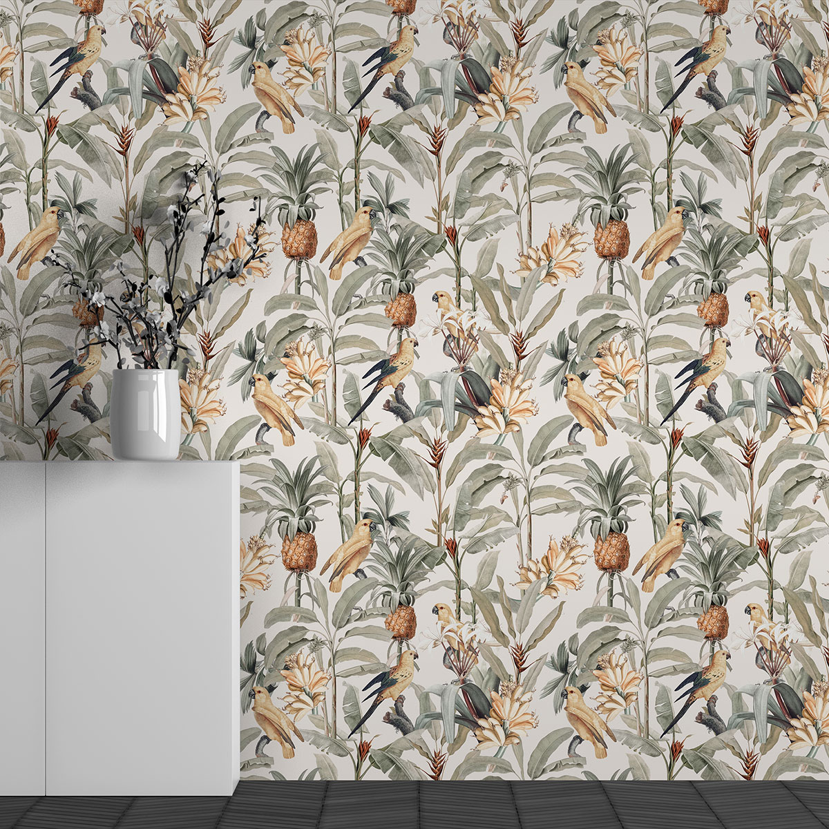 Papel pintado panorámico - Motivo Pájaros Piñas