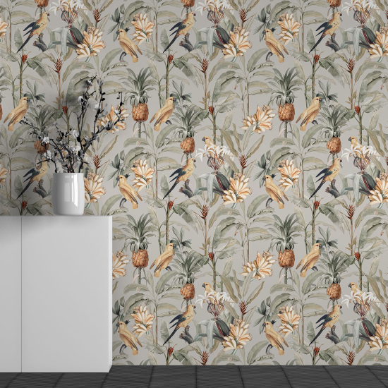 www.lumalea.es > Papeles Pintados > Papeles Pintados Panorámicos > Tropical / Jungla > Papel pintado panorámico - Motivo Pájaros Piñas