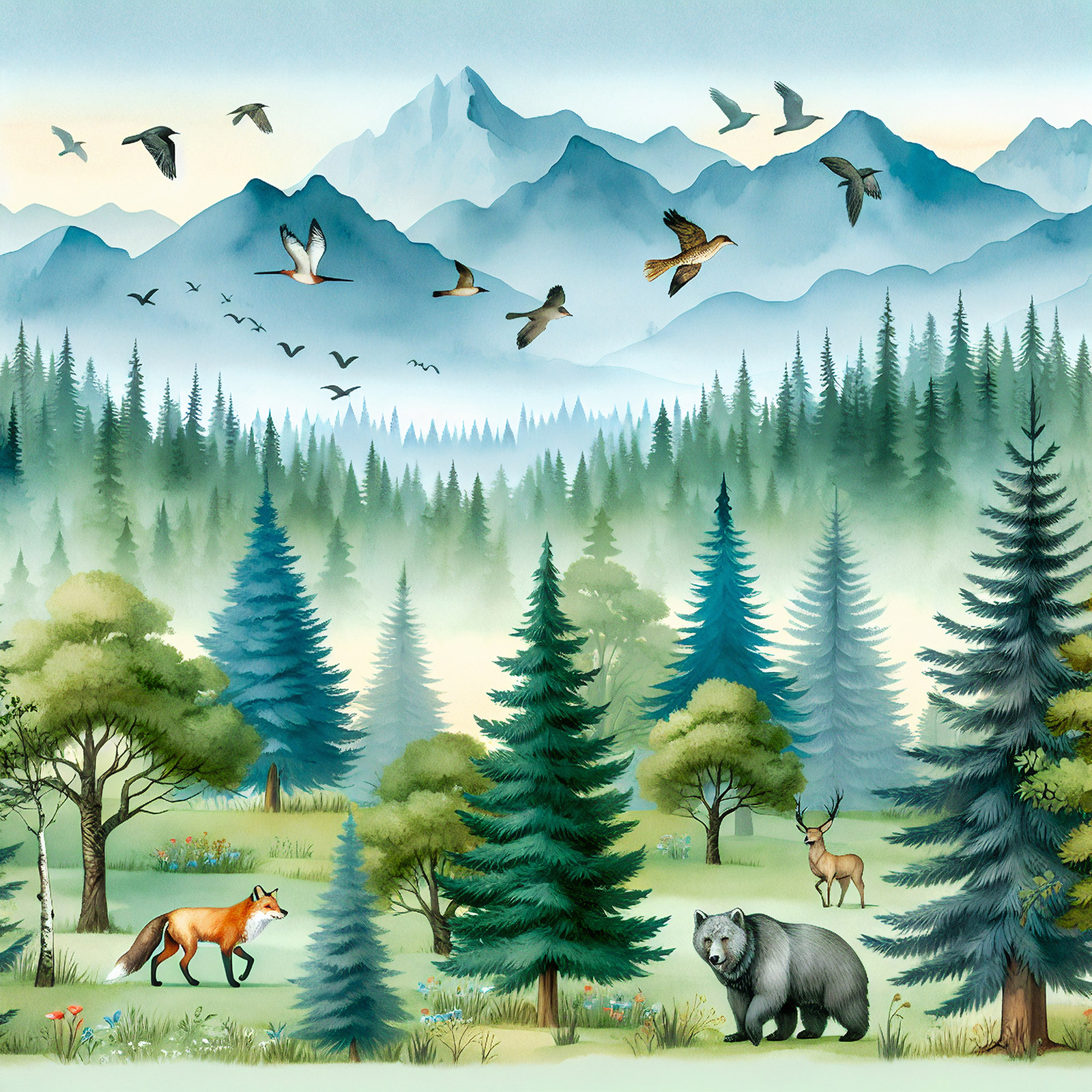 Papel pintado panorámico Niños - Animales del Bosque