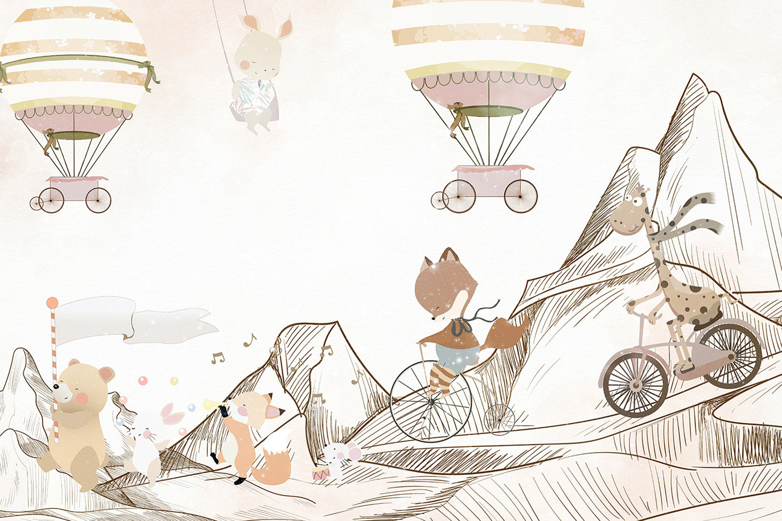 Papel pintado panorámico Niños - Animales Globos aerostáticos