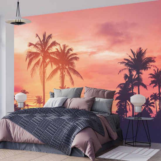 Papel pintado panorámico - Palmeras Puesta de Sol