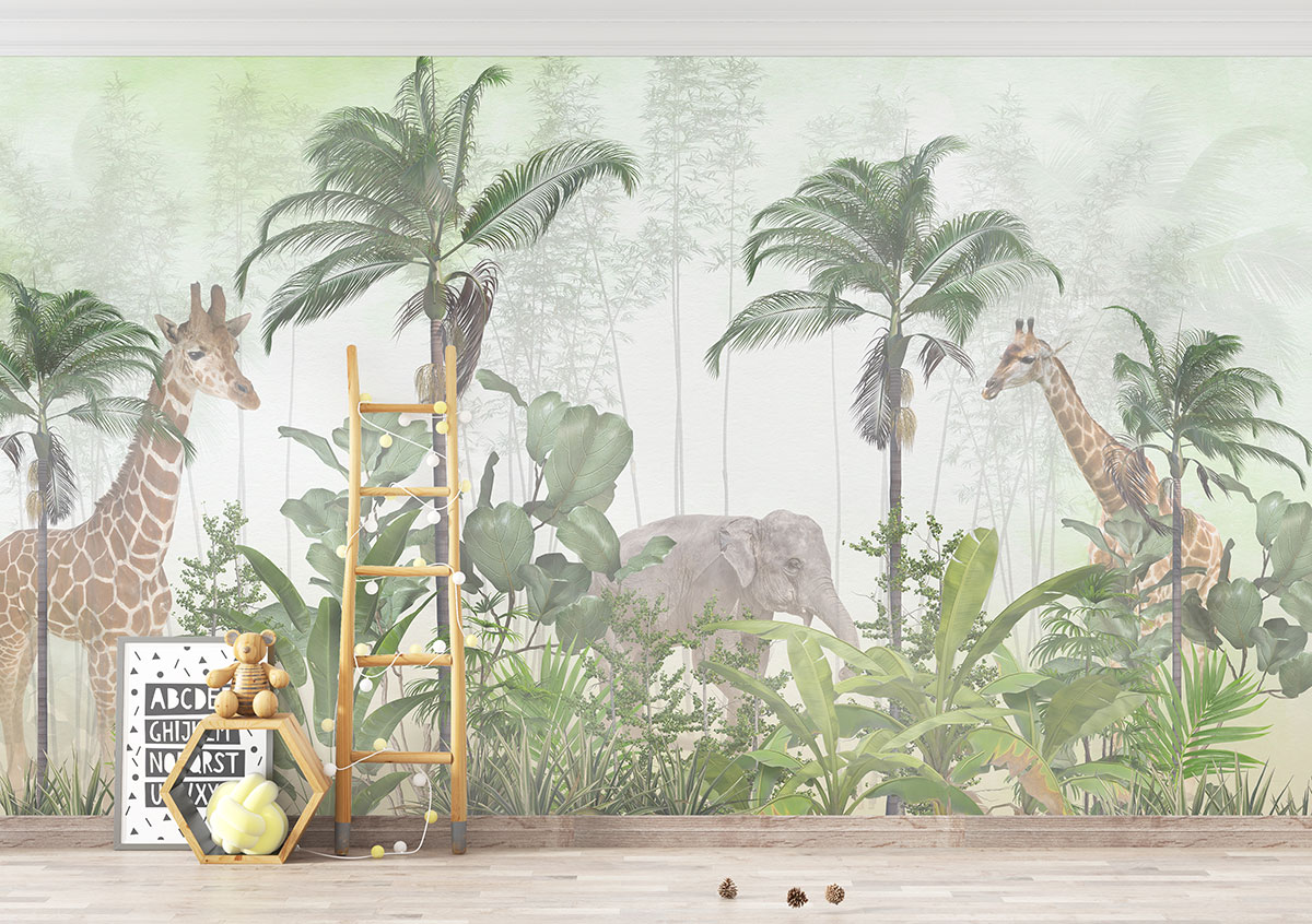 Papel pintado panorámico para niños - Infantil - Animales de la Selva