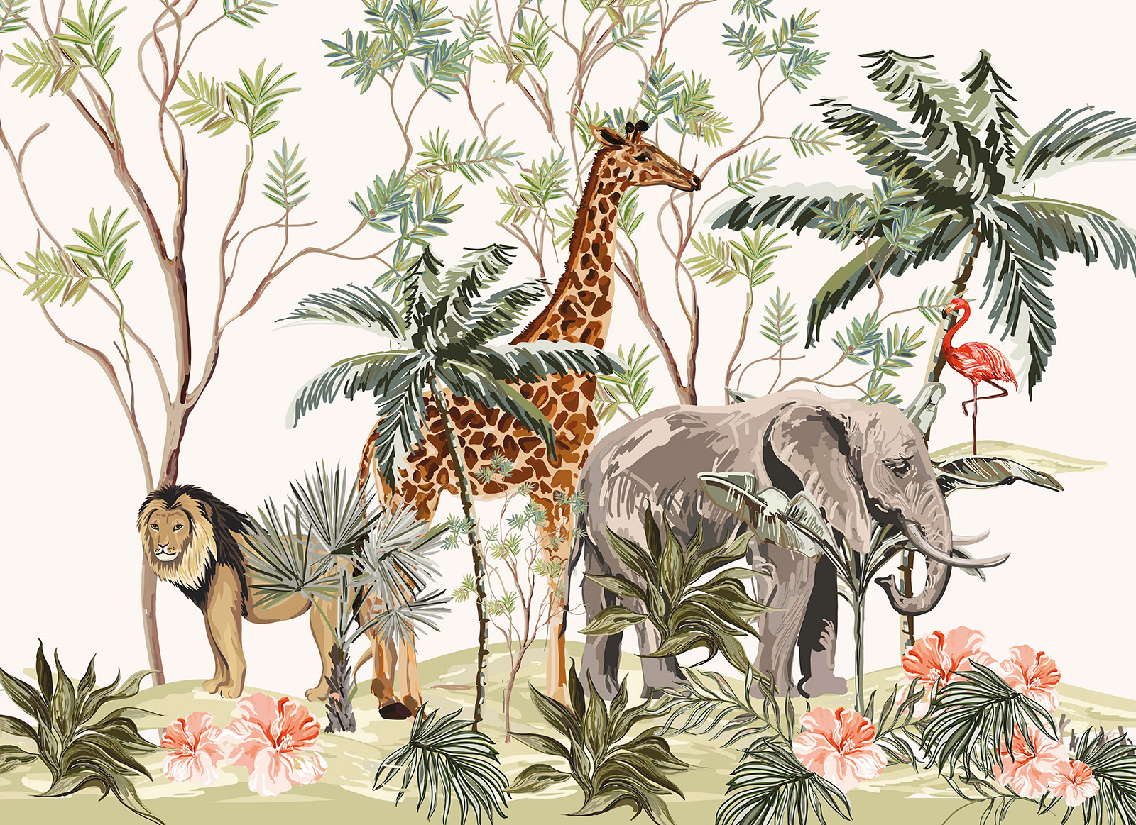 Papel pintado panorámico para niños - Infantil - Animales de la Selva