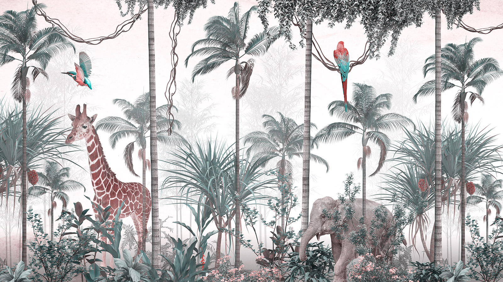 Papel pintado panorámico para niños - Infantil - Animales de la Selva