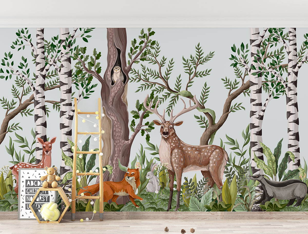 Papel pintado panorámico para niños - Infantil - Animales del Bosque