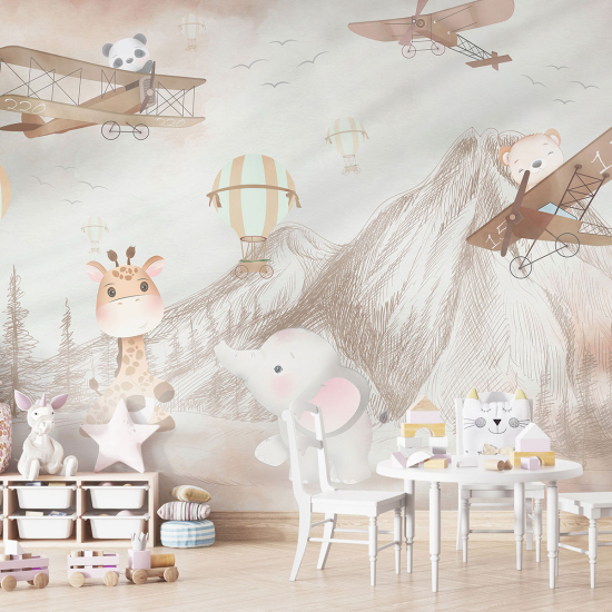 Papel pintado panorámico para niños - Infantil - Aviones Animales