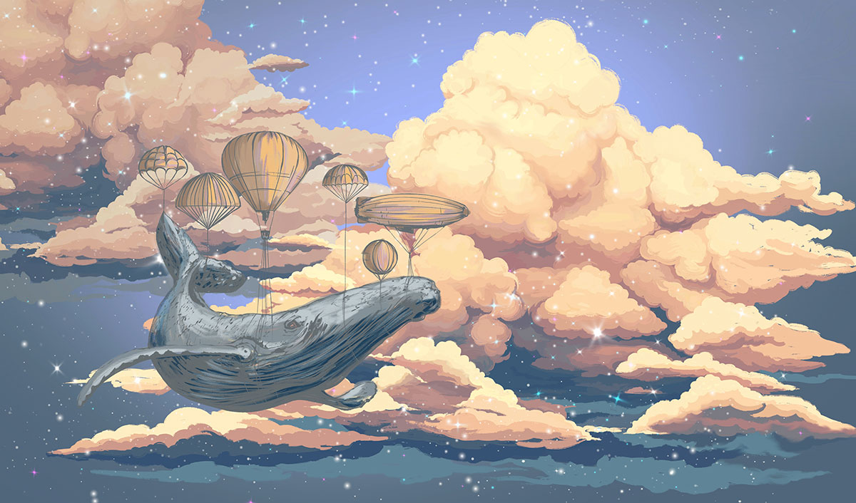 Papel pintado panorámico para niños - Infantil - Ballena Nubes