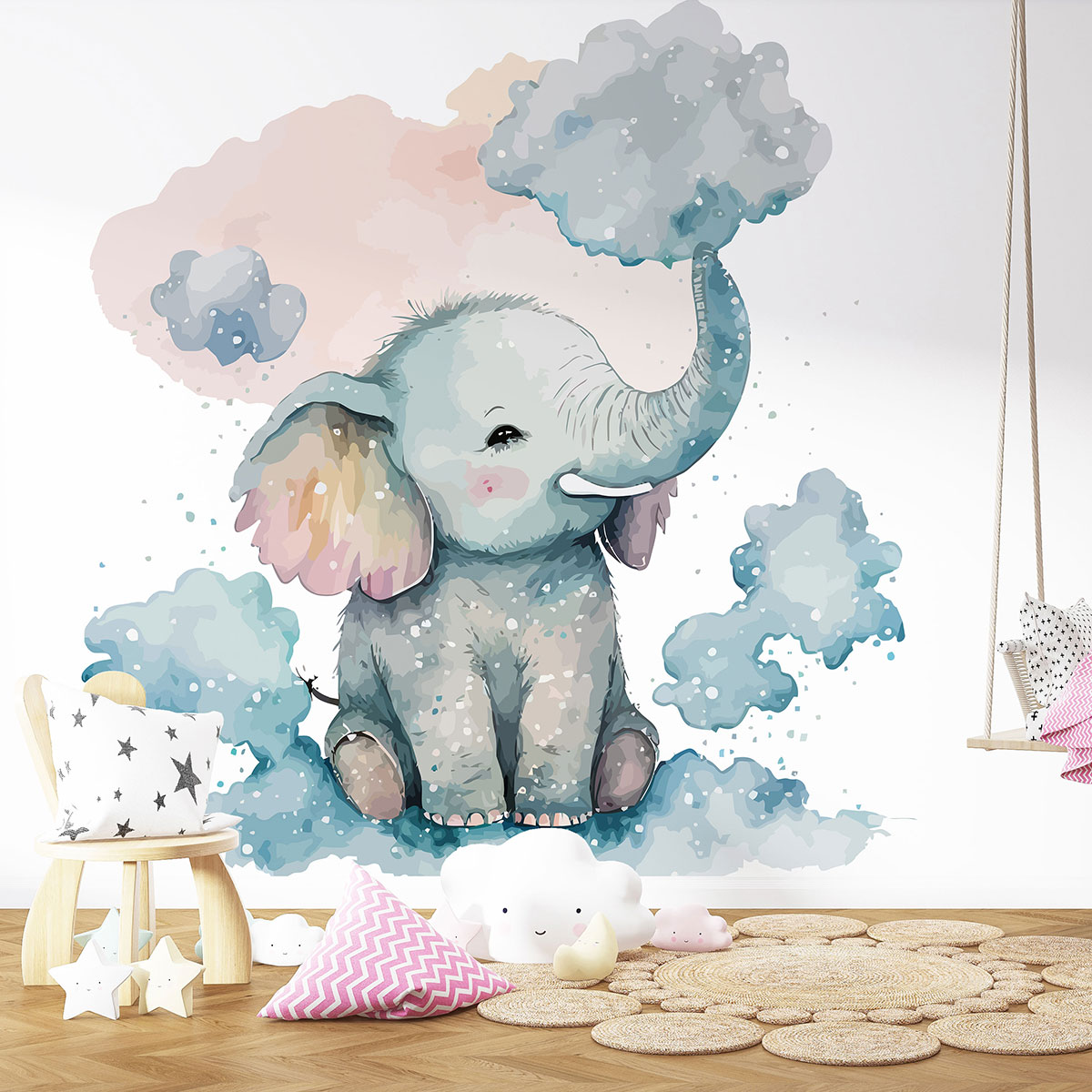 Papel pintado panorámico para niños - Infantil - Elefante nubes