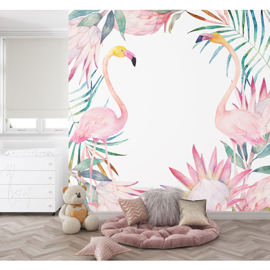 Papel pintado panorámico para niños - Infantil - Flamencos rosas