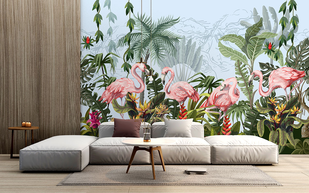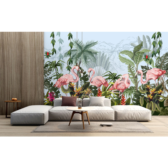 Papel pintado panorámico para niños - Infantil - Flamencos rosas