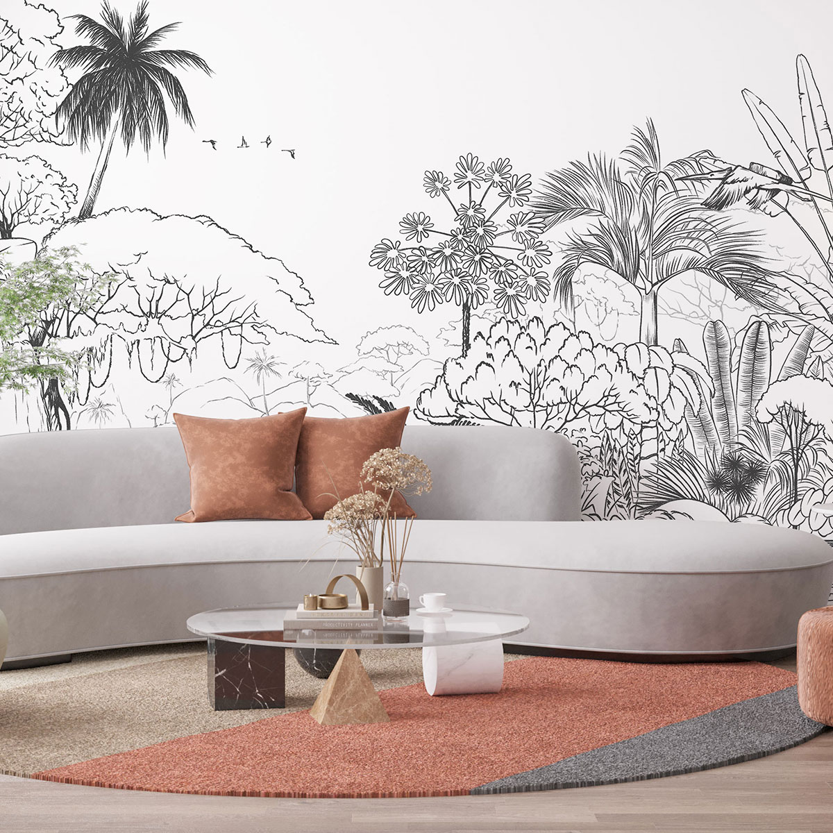 Un diseño para cada gusto : Ya sea que te gusten los motivos abstractos, los paisajes exóticos, las ilustraciones artísticas o las texturas minimalistas, nuestra selección de papel pintado panorámico ofrece una variedad de diseños para satisfacer todos los gustos. Nuestro equipo de diseñadores talentosos trabaja incansablemente para crear obras de arte mural únicas que añadirán una touche de elegancia moderna a tu interior.