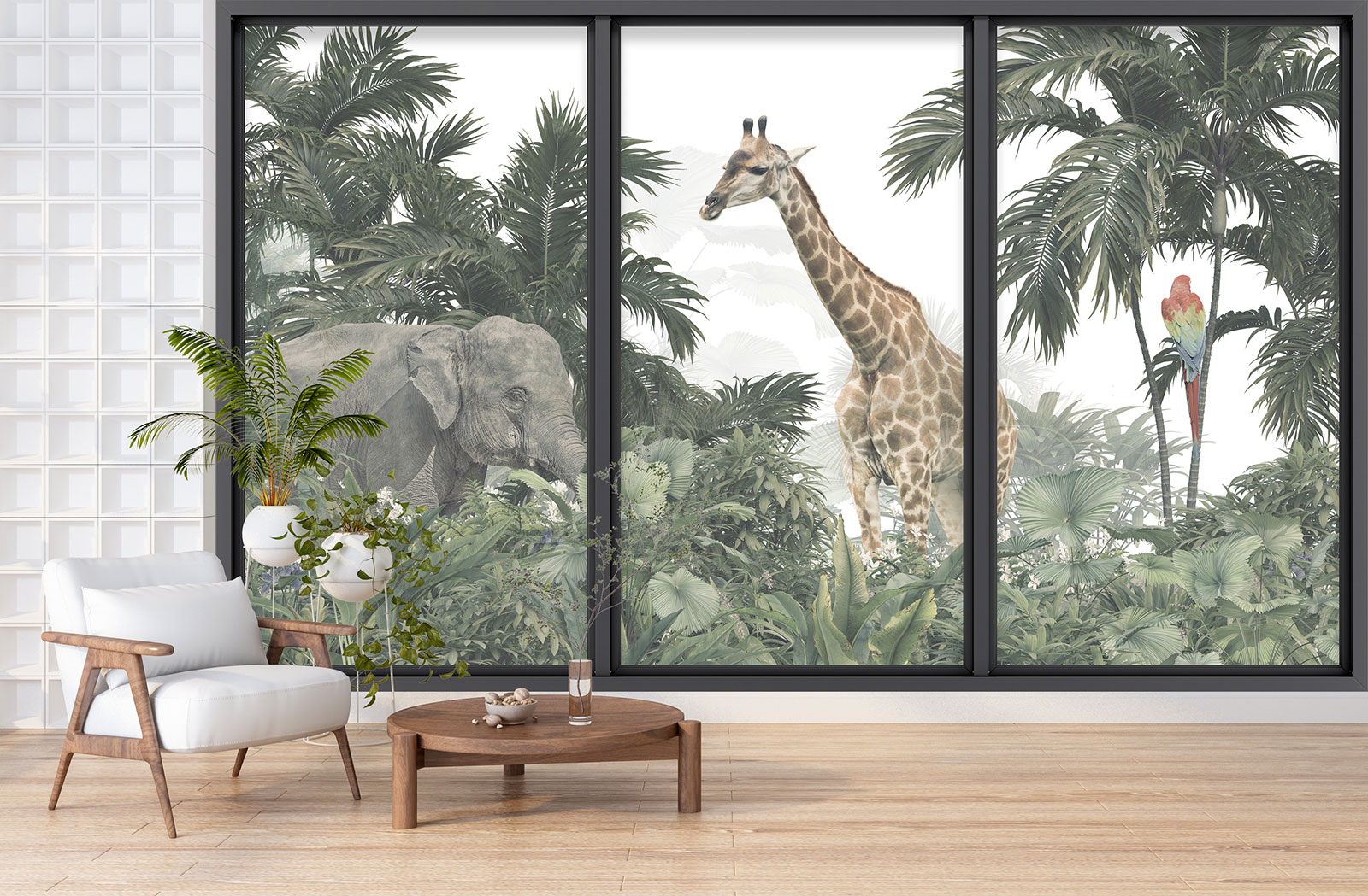 Papel pintado panorámico trampantojo - Animales de la jungla