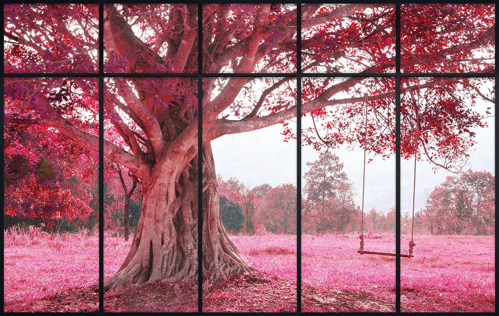 Papel pintado panorámico trampantojo - Árbol flores rosas