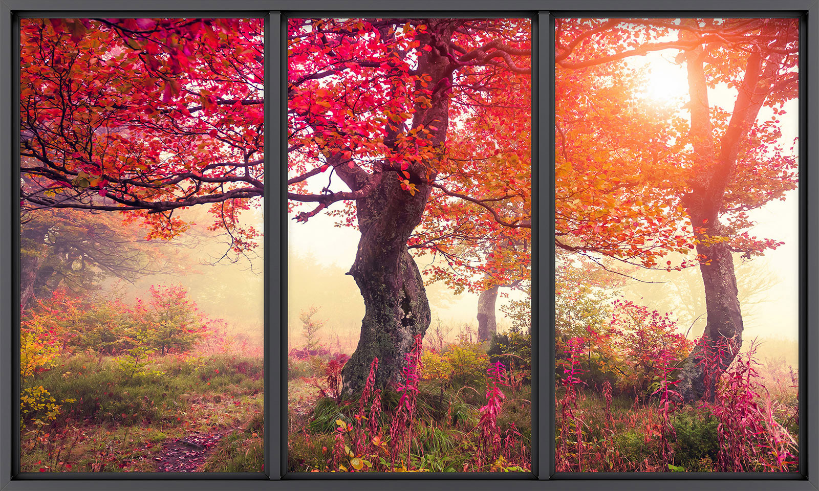 Papel pintado panorámico trampantojo - Árboles hojas rojas