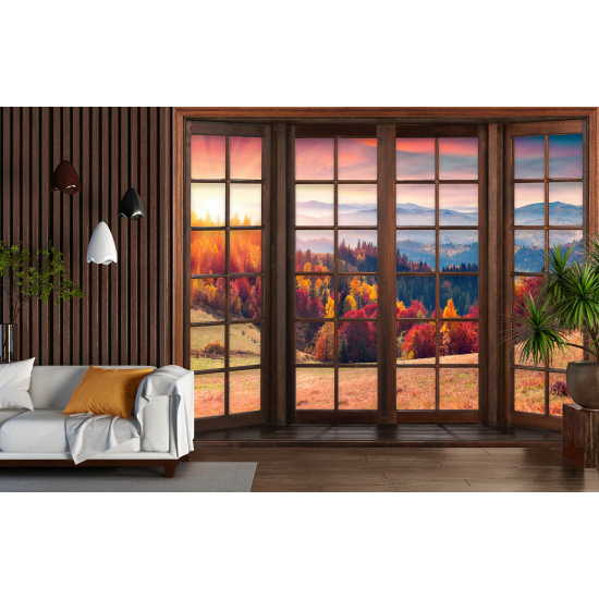 www.lumalea.es > Papeles Pintados > > > Papeles Pintados Trampantojo 3D > Ventanas Trampantojo 3D > Papel pintado panorámico trampantojo - Bosque otoño