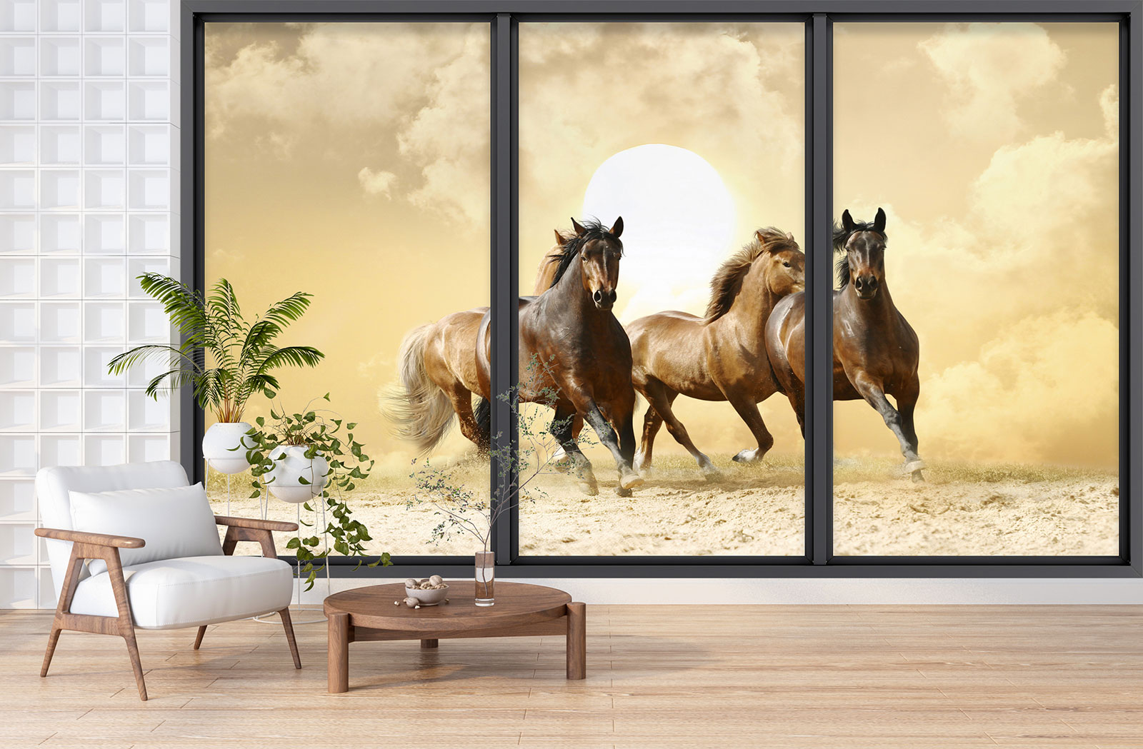 www.lumalea.es > Papeles Pintados > > > Papeles Pintados Trampantojo 3D > Ventanas Panorámicas Trampantojo 3D > Papel pintado panorámico trampantojo - Caballos