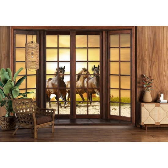 Papel pintado panorámico trampantojo - Caballos